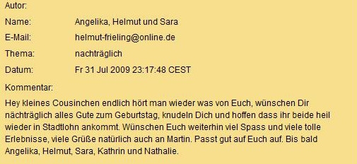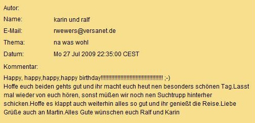 Gästebuch Einen neuen Eintrag für das Gästebuch schreiben xDieses Formular ausblenden Name * Ort E-Mail * Website Hier nichts eingeben Hier nichts eingeben Hier nichts eingeben Hier nichts eingeben Gästebucheintrag * 😄 😃 😉 😊 😚 😗 😜 😛 😳 😁 😬 😌 😞 😘 😍 😢 😂 😭 😅 😓 😩 😮 😱 😠 😡 😤 😋 😎 😴 😈 😇 😕 😏 😑 👲 👮 💂 👶 ❤ 💔 💕 💘 💌 💋 🎁 💰 💍 👍 👎 👌 ✌️ 🤘 👏 🎵 ☕️ 🍵 🍺 🍷 🍼 ☀️ 🌤 🌦 🌧 🌜 🌈 🏝 🎅 Warnung: Dieses Formular kann nur verwendet werden, wenn in deinem Browser JavaScript aktiviert ist. Mit * gekennzeichnete Felder sind Pflichtfelder. Die E-Mail-Adresse wird nicht veröffentlicht. Aus Sicherheitsgründen speichern wir die IP-Adresse 216.73.216.22. Es könnte sein, dass der Eintrag im Gästebuch erst sichtbar ist, nachdem wir ihn geprüft haben. Wir behalten uns das Recht vor, Einträge zu bearbeiten, zu löschen oder Einträge nicht zu veröffentlichen. (Noch keine Einträge) Hier findet Ihr das archivierte Gästebuch ◄ 1 2 3 4 ... 10 ► Link zur aktuellen Datenschutzerklärung Teilen mit:Klick, um über Twitter zu teilen (Wird in neuem Fenster geöffnet)Klick, um auf Facebook zu teilen (Wird in neuem Fenster geöffnet)