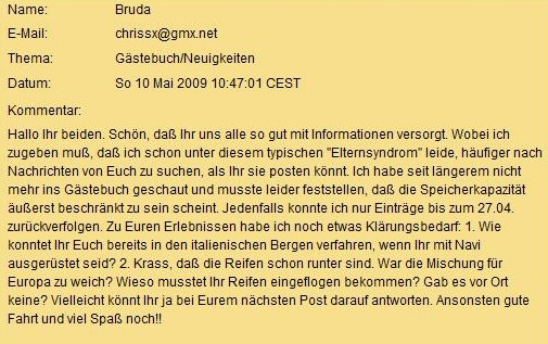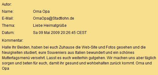Gästebuch Einen neuen Eintrag für das Gästebuch schreiben xDieses Formular ausblenden Name * Ort E-Mail * Website Hier nichts eingeben Hier nichts eingeben Hier nichts eingeben Hier nichts eingeben Gästebucheintrag * 😄 😃 😉 😊 😚 😗 😜 😛 😳 😁 😬 😌 😞 😘 😍 😢 😂 😭 😅 😓 😩 😮 😱 😠 😡 😤 😋 😎 😴 😈 😇 😕 😏 😑 👲 👮 💂 👶 ❤ 💔 💕 💘 💌 💋 🎁 💰 💍 👍 👎 👌 ✌️ 🤘 👏 🎵 ☕️ 🍵 🍺 🍷 🍼 ☀️ 🌤 🌦 🌧 🌜 🌈 🏝 🎅 Warnung: Dieses Formular kann nur verwendet werden, wenn in deinem Browser JavaScript aktiviert ist. Mit * gekennzeichnete Felder sind Pflichtfelder. Die E-Mail-Adresse wird nicht veröffentlicht. Aus Sicherheitsgründen speichern wir die IP-Adresse 216.73.216.22. Es könnte sein, dass der Eintrag im Gästebuch erst sichtbar ist, nachdem wir ihn geprüft haben. Wir behalten uns das Recht vor, Einträge zu bearbeiten, zu löschen oder Einträge nicht zu veröffentlichen. (Noch keine Einträge) Hier findet Ihr das archivierte Gästebuch ◄ 1 ... 6 7 8 ... 10 ► Link zur aktuellen Datenschutzerklärung Teilen mit:Klick, um über Twitter zu teilen (Wird in neuem Fenster geöffnet)Klick, um auf Facebook zu teilen (Wird in neuem Fenster geöffnet)